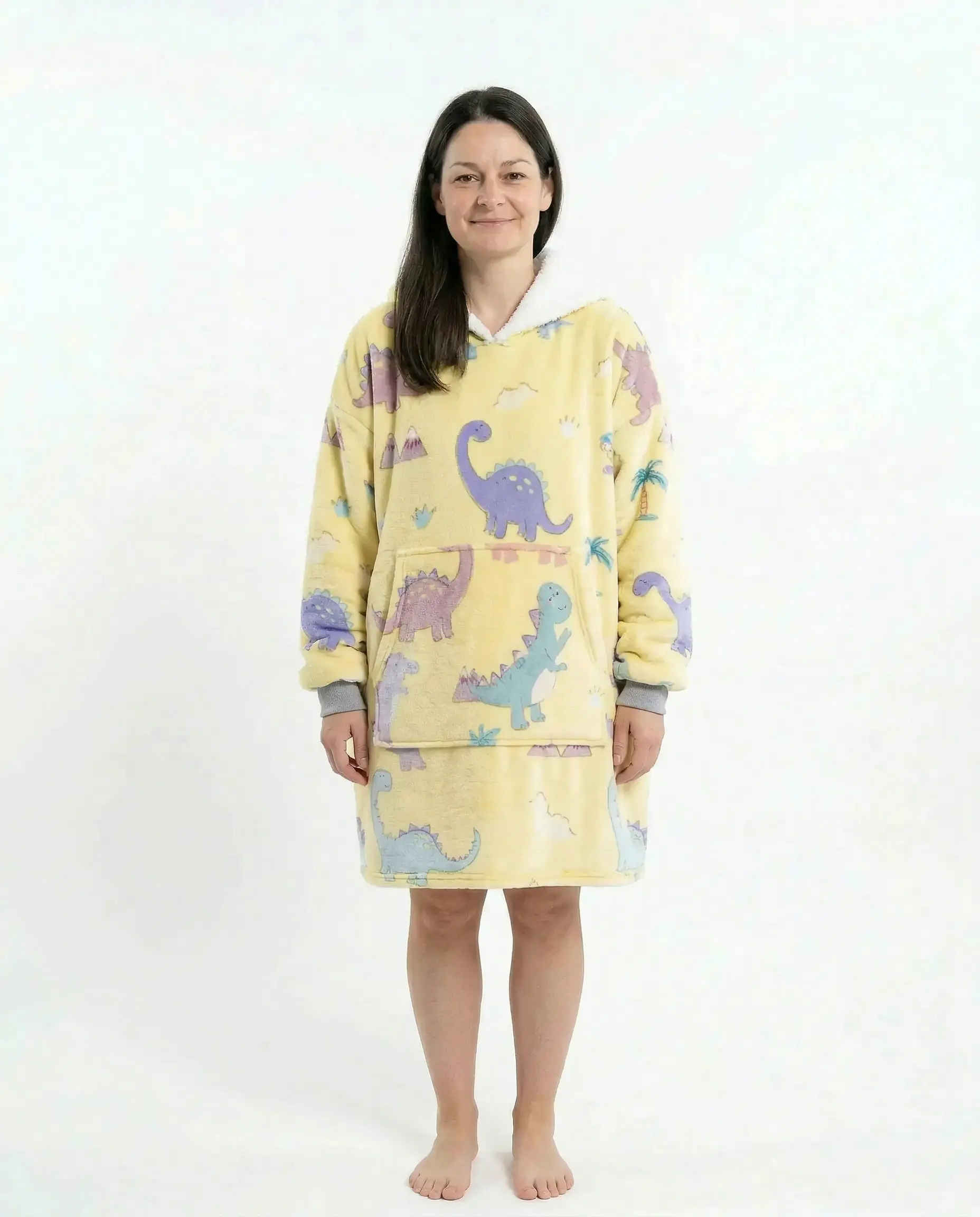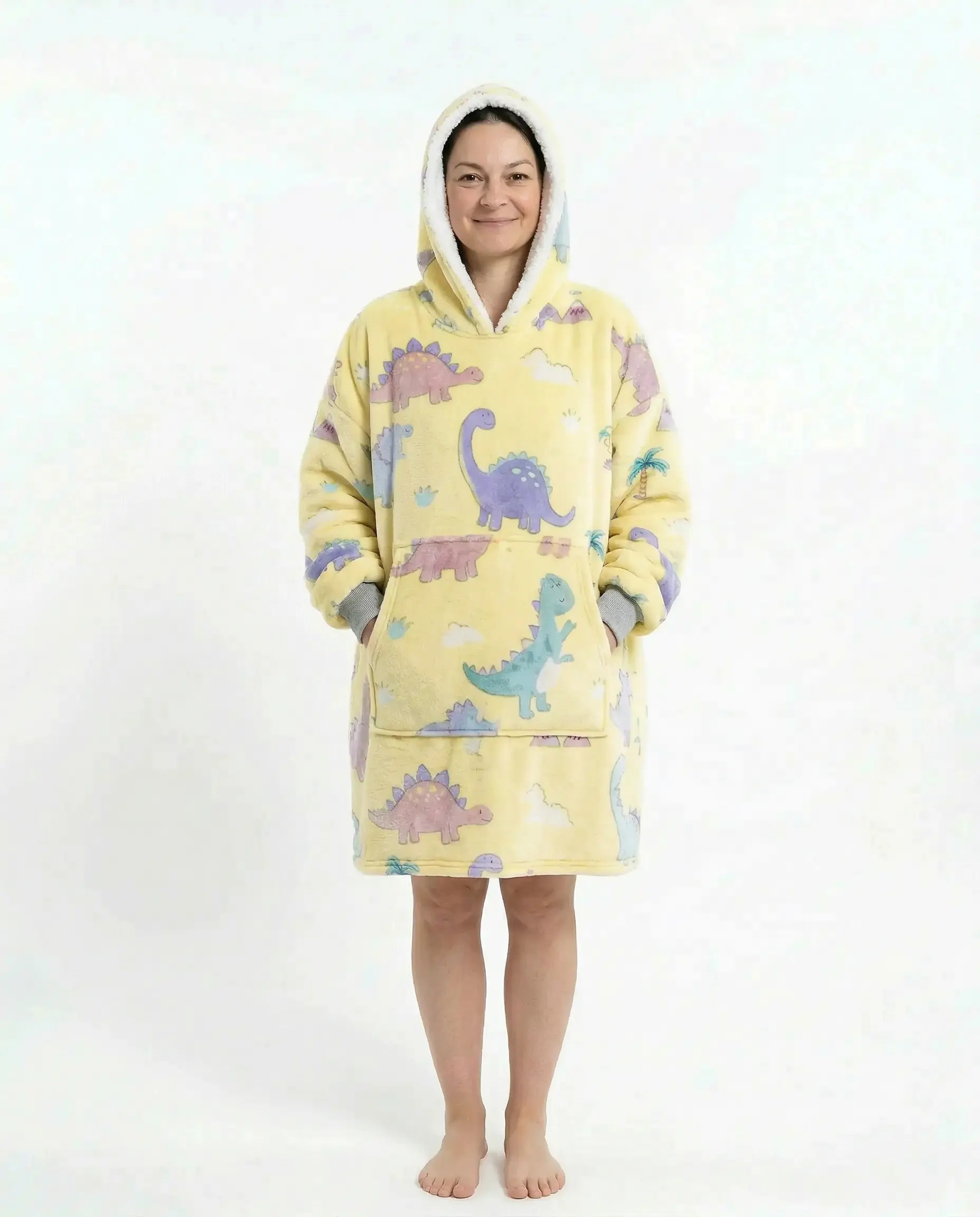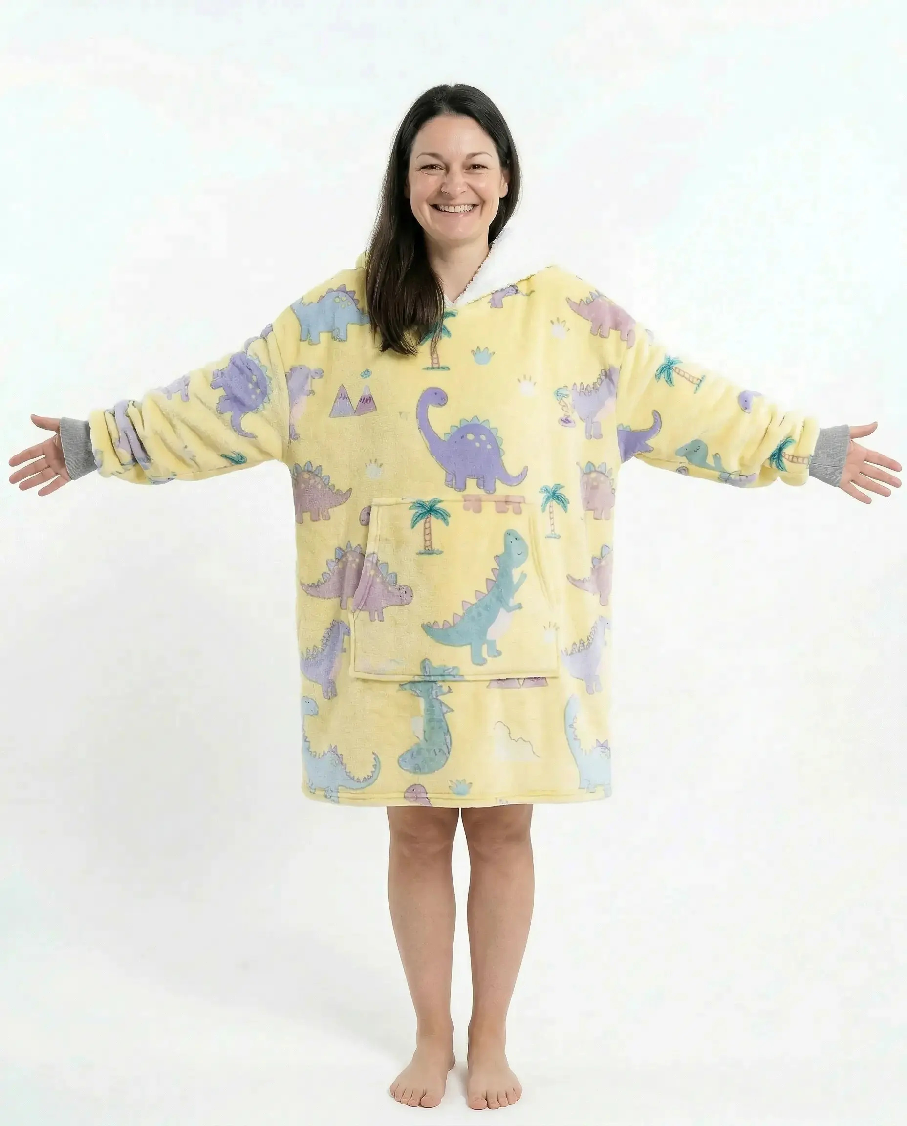 Kocobluza w wzór Dinozaury to idealne rozwiązanie dla osób, które cenią sobie ciepło, wygodę i modny wygląd w jednym. Ten model łączy w sobie funkcjonalność klasycznej bluzy z komfortem miękkiego koca, dzięki czemu doskonale sprawdzi się podczas chłodnych dni i wieczorów