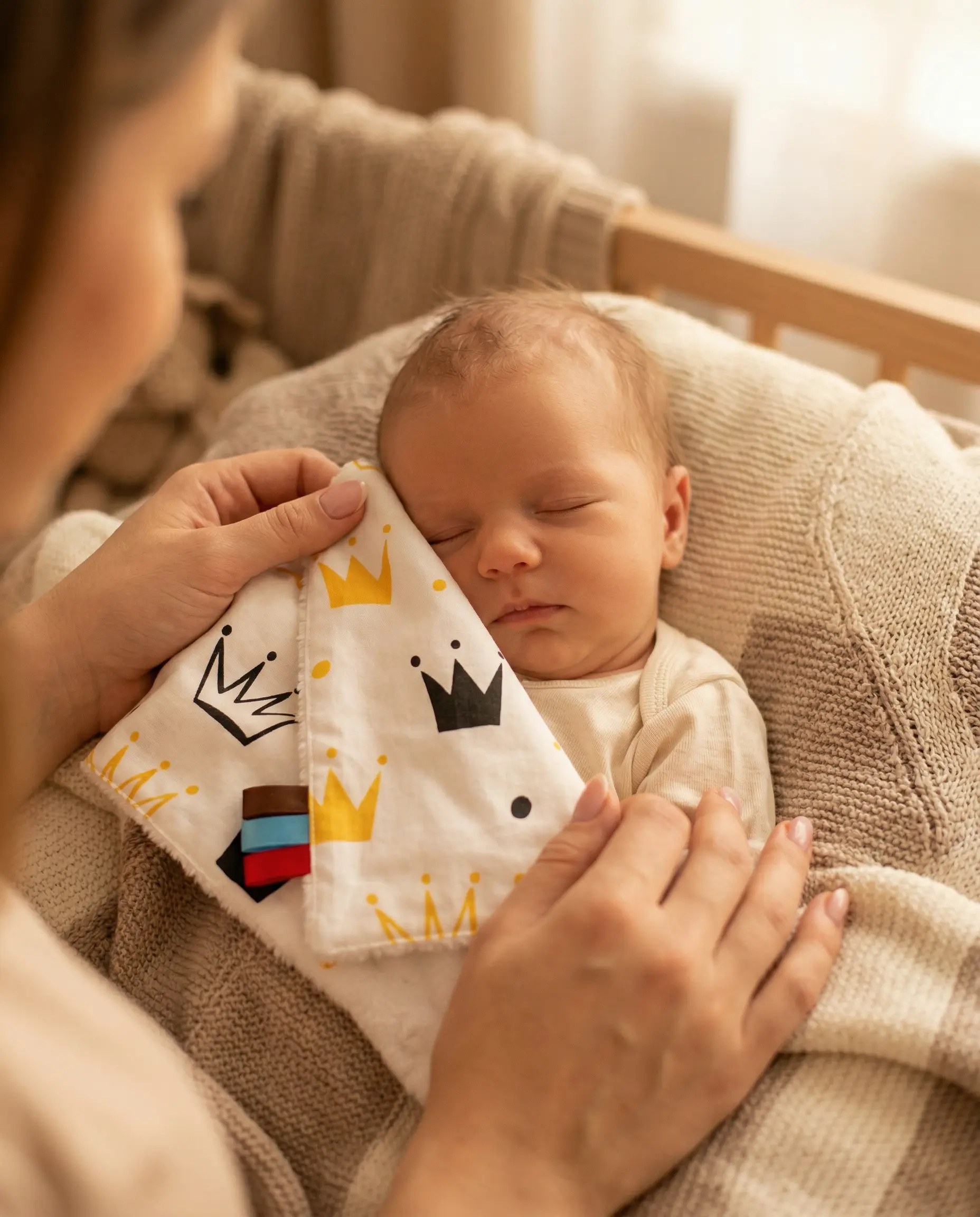 Przytulak sensoryczny z bawełna + futerko to wyjątkowy, miękki towarzysz stworzony z myślą o najmłodszych dzieciach już od pierwszych dni życia. Jest delikatny dla wrażliwej skóry niemowlęcia i bezpieczny w codziennym użytkowaniu. Lekka i przyjemna w dotyku tkanina sprawia, że dziecko chętnie go przytula, co daje poczucie komfortu i bezpieczeństwa.