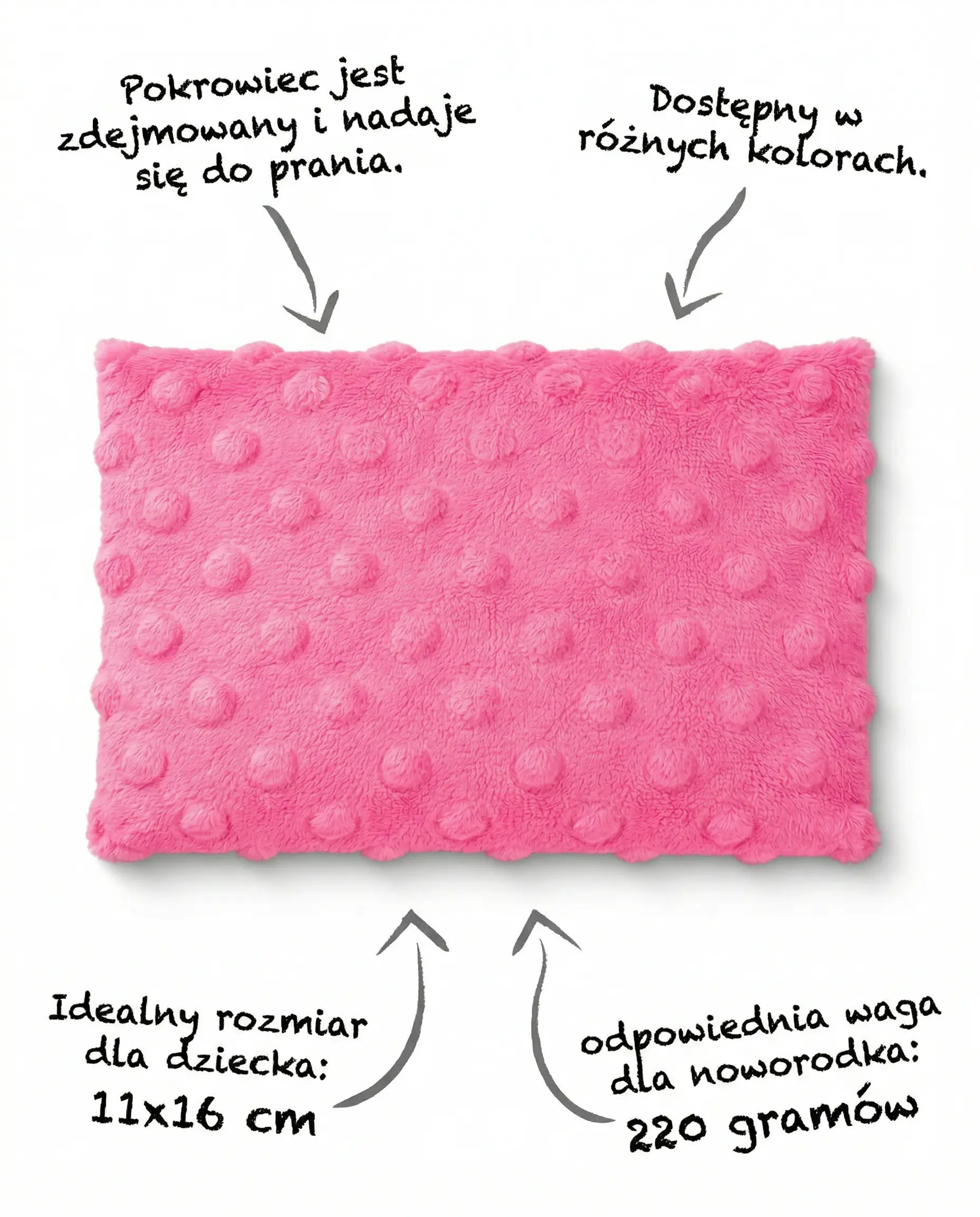 • wykonany z oryginalnego materiału MINKY z certyfikatem STANDARD 100 by OEKO-TEX®