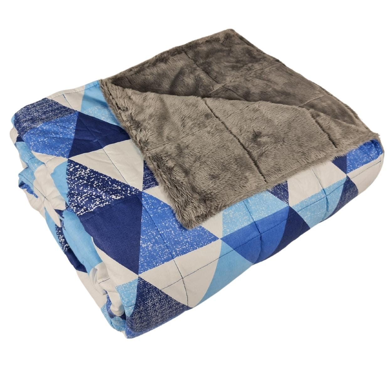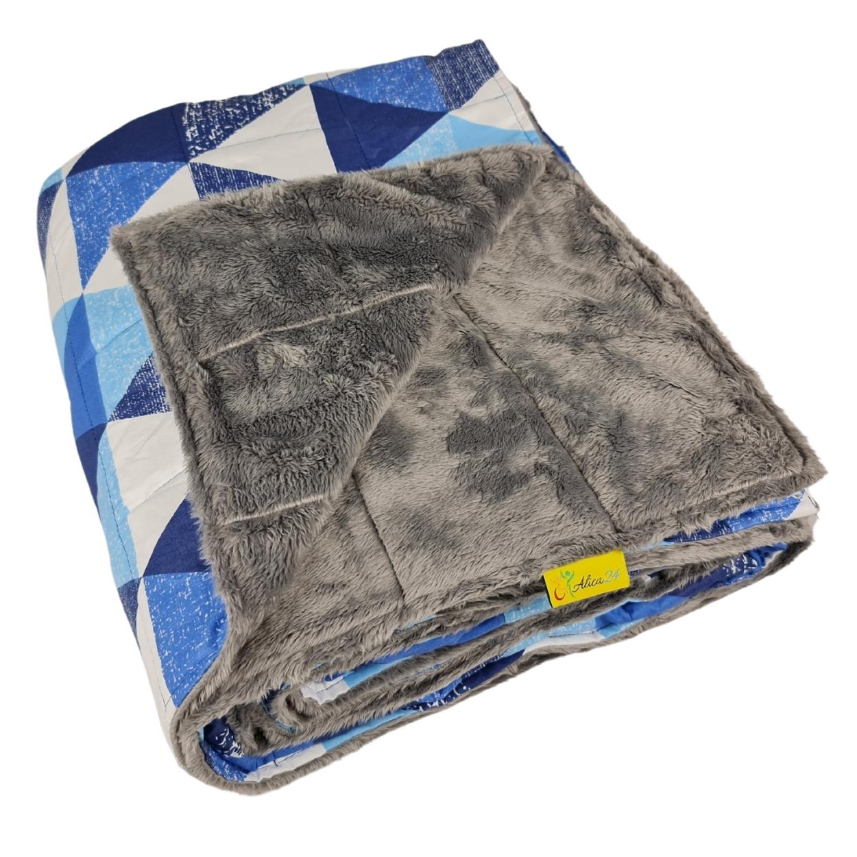 Trójkąty Niebieskie - Bawełna + Futerko - Kołderka Obciążeniowa, Terapeutyczna