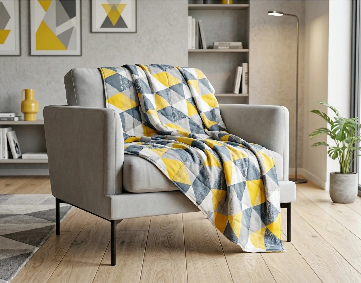Żółte Trójkąty - Bawełna - Kołdra Sensoryczna