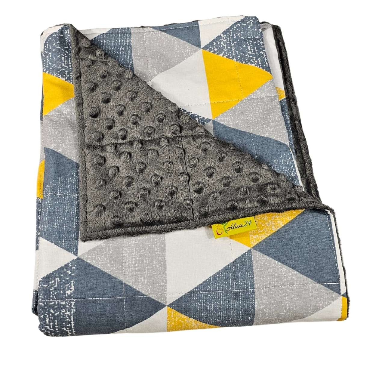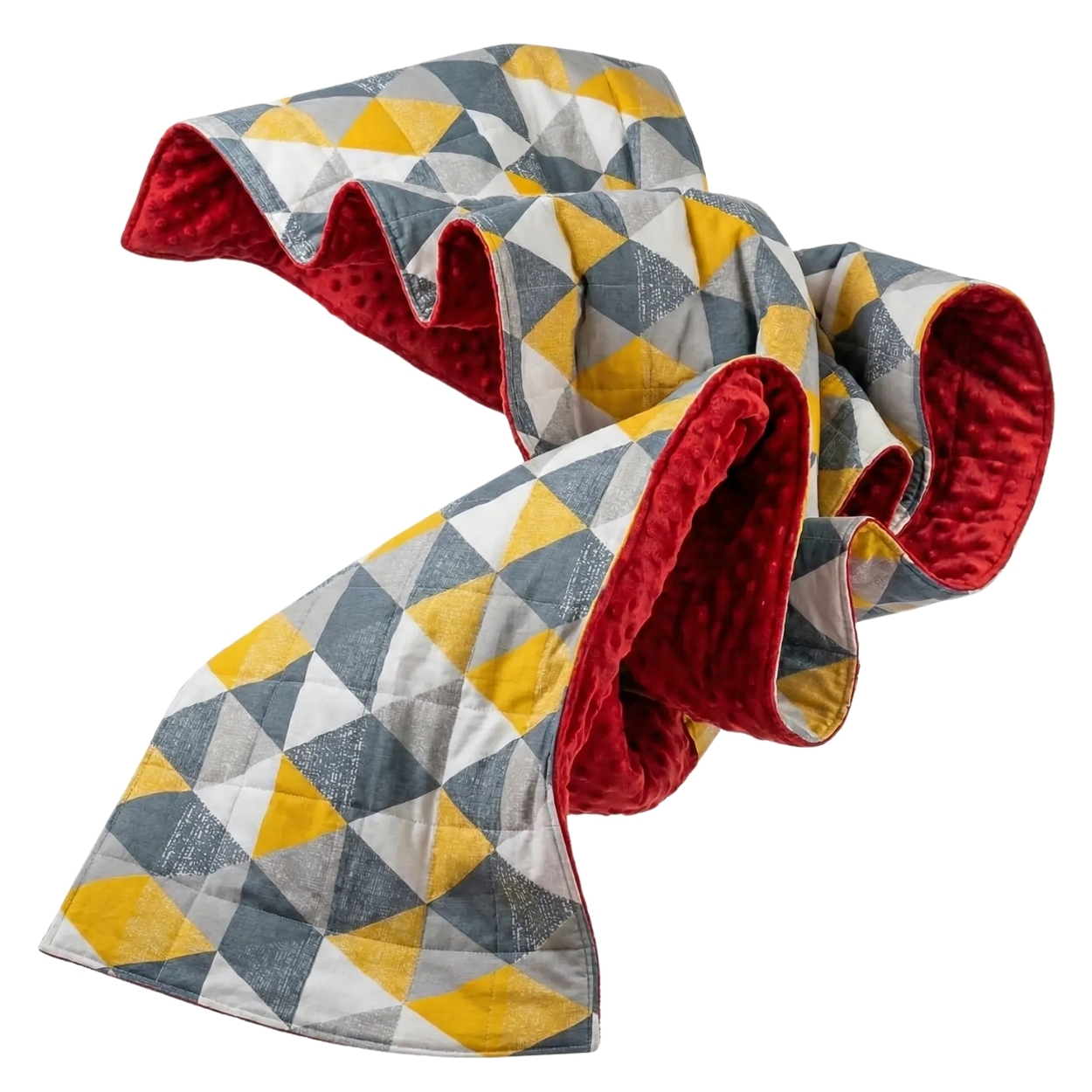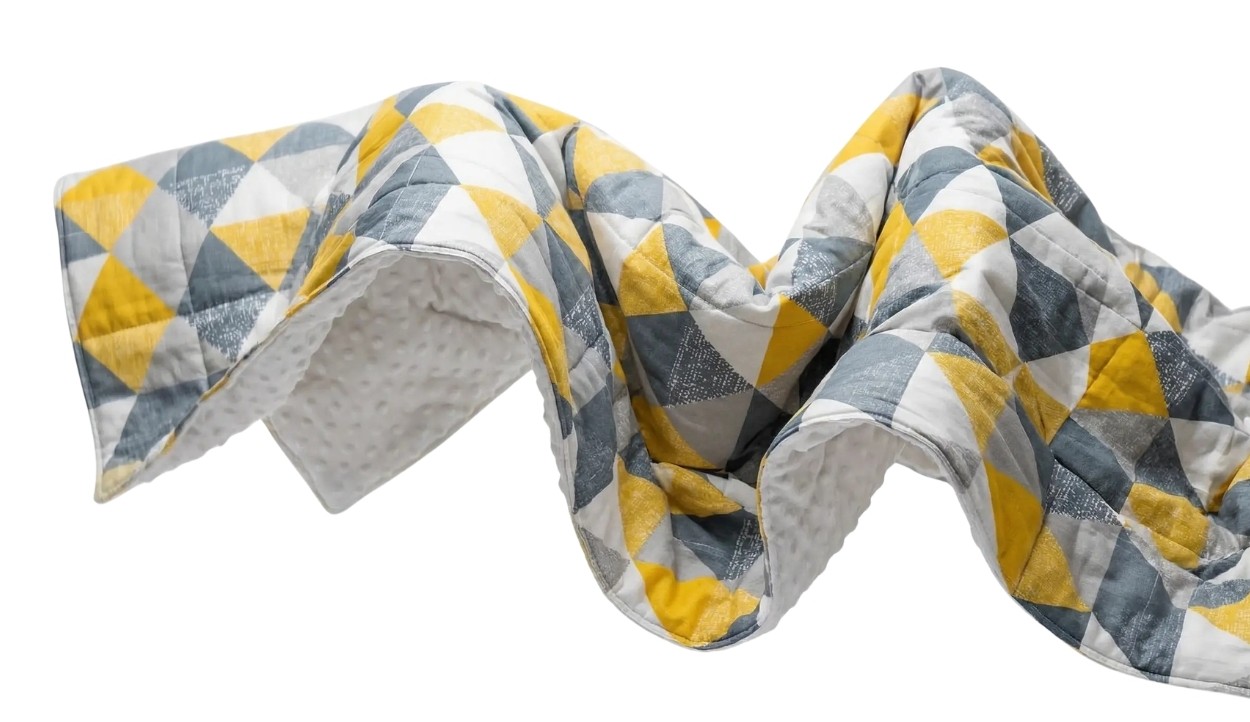 Żółte Trójkąty - Bawełna + Minky - Kołderka Obciążeniowa